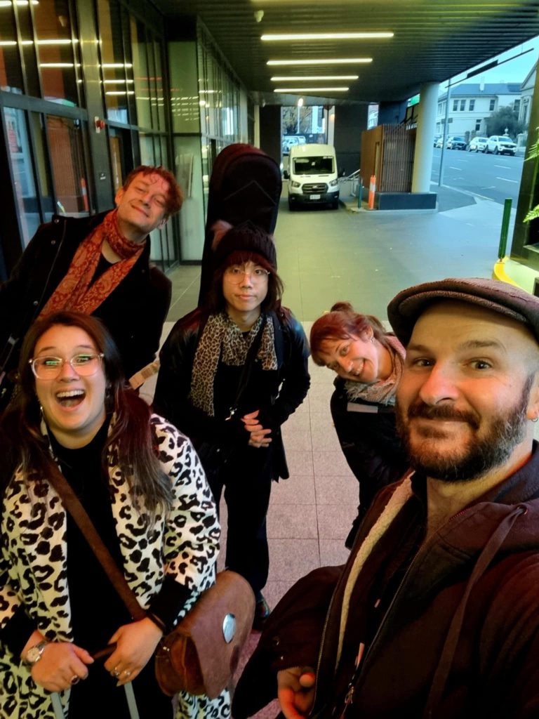 About 30 minutes before our set the stage manager arrived to let us know it was raining and that we could either play in the rain on an uncovered stage in the middle of the Tasmanian winter, or we could move to one of the smaller stages inside. The band trundled down the stairs and out into the parking lot to hold our hands up and assess whether the rain was too much. We made the decision to bring it inside, which was a little bit sad because we’d been looking forward to the full light show and smoke machine experience on the big stage. Instead we had a harried 10 minute change over where we had to bring entire drum kit and backline into a tiny tent, get everything set up and play without a soundcheck. Main downside? No fall back. Main upside? A couple hundred people crammed into the tent with us. It was a sweaty sticky mess, an awesome fun time, a great gig after a month off.